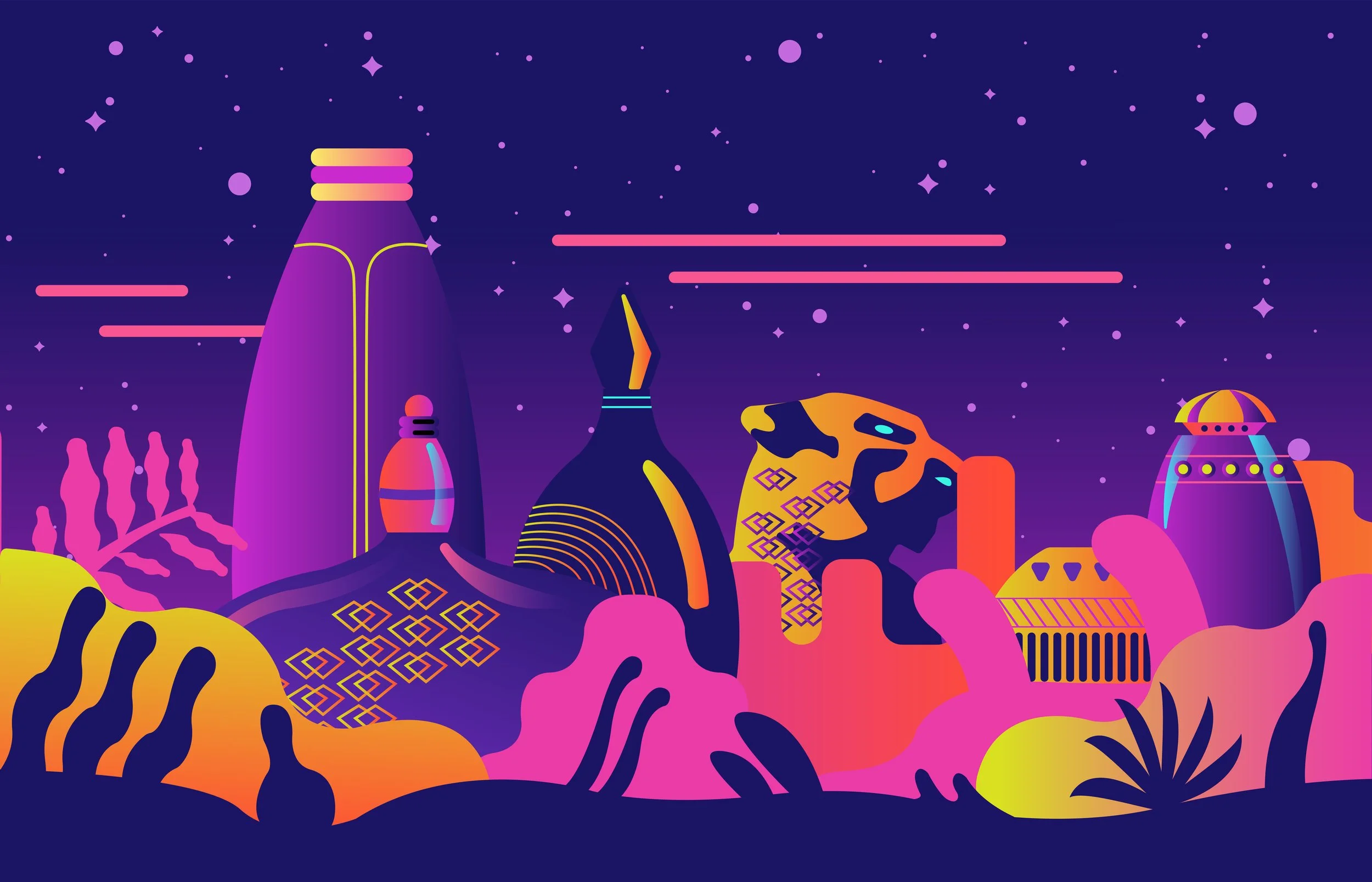 Jordan Moss, “Illustrations Used as Animated Stage Graphics for Burna Boy and Atlantic Records at Coachella”, 2019